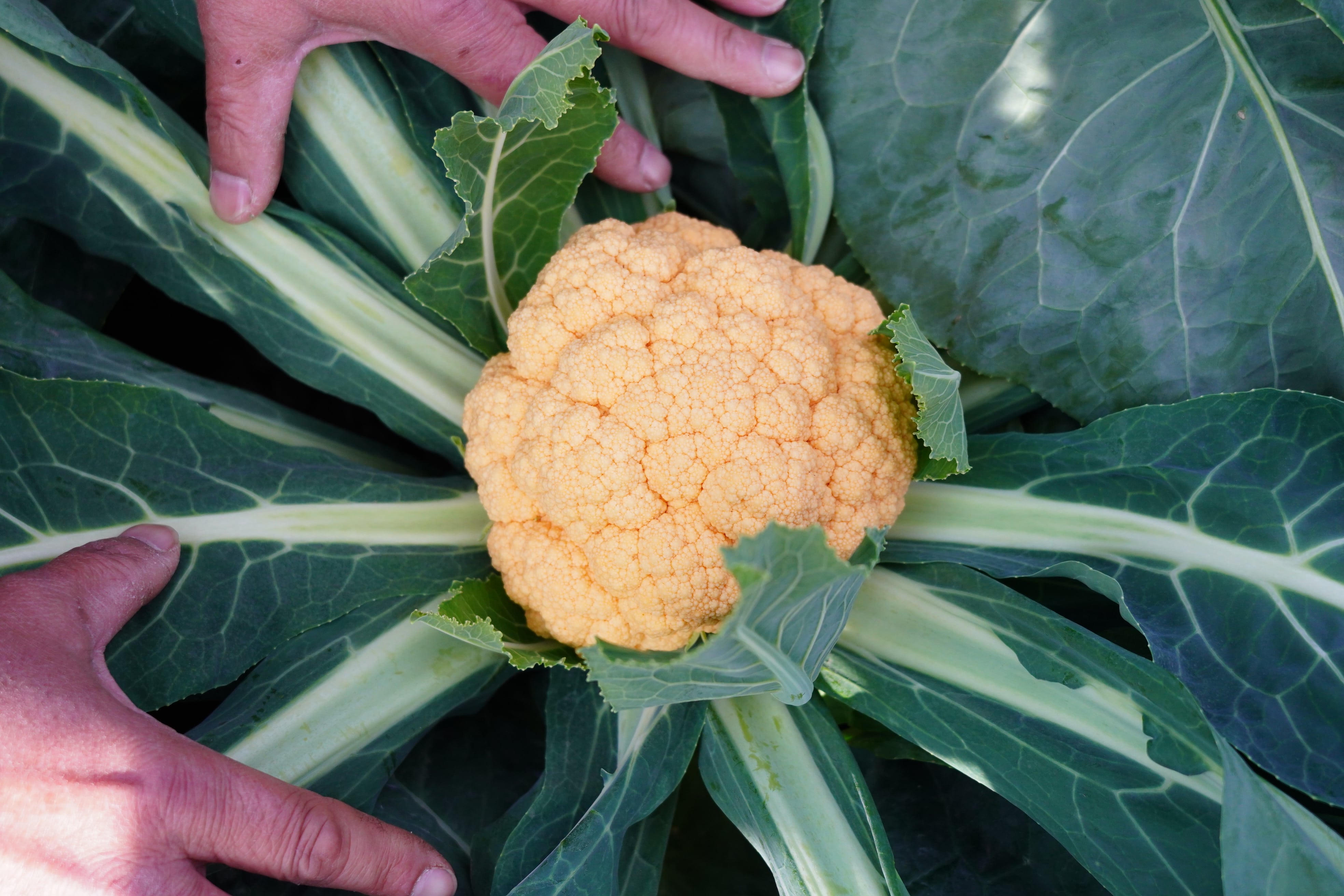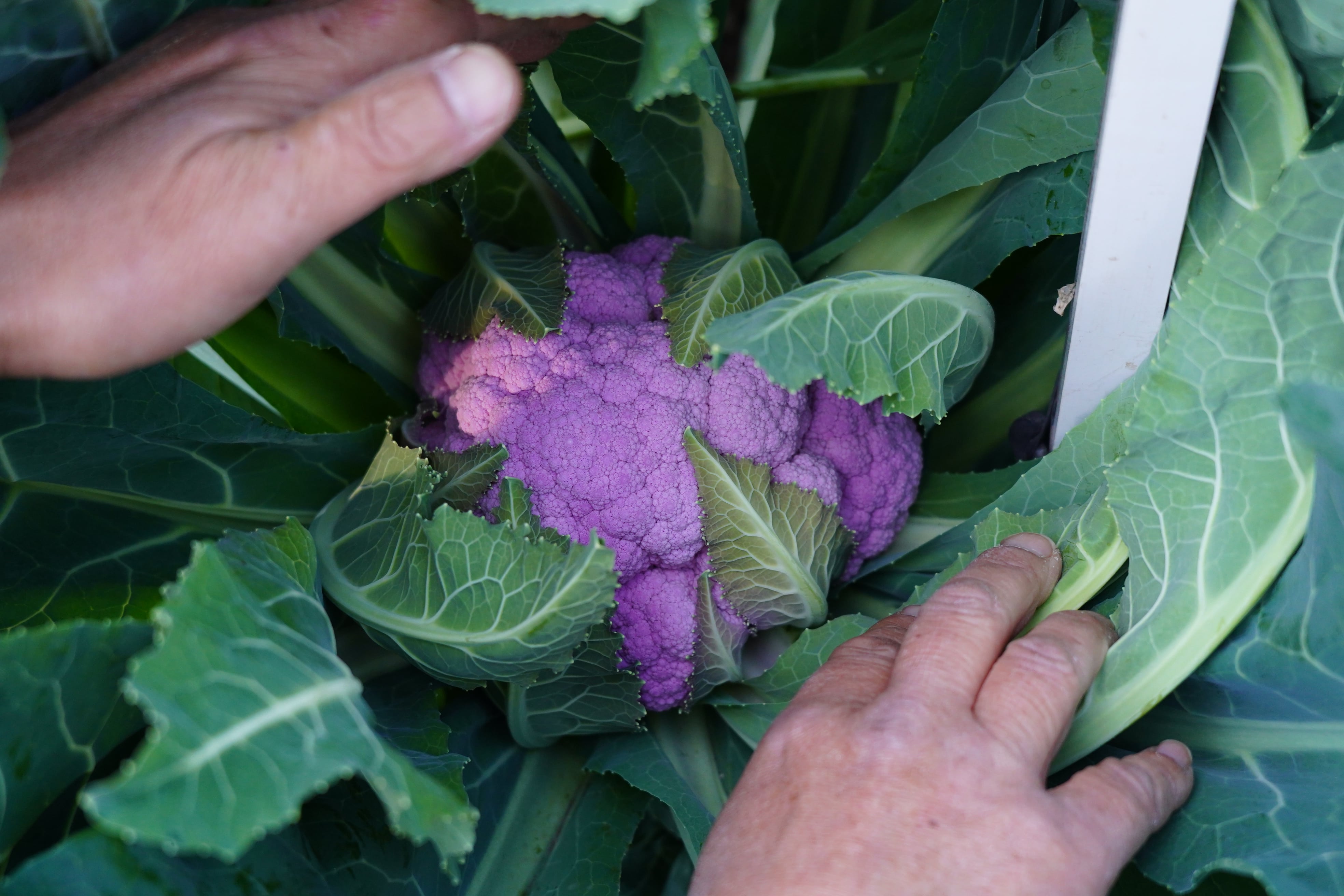 また、一坪菜園ゾーンで見たカリフラワー「オーナメントシリーズ」も気になりました。カリフラワーは栽培が難しいイメージがありますが、うまく作れると高単価で売れるし、今後チャレンジしてみたいと思いました。特にオレンジ色の品種「SK6-804」は、カタログ以外で初めて見ましたが、きれいなオレンジで目を引きましたね。
