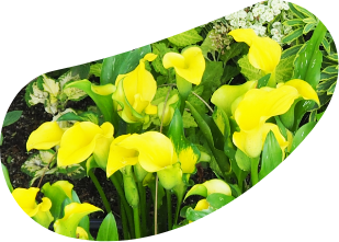 大きな花束のようなカラーのエリアで、半日陰を華やかに!