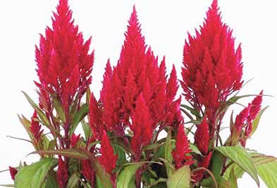 ケイトウ「フランマ レッドウィズブロンズリーフ」、ケイトウ「フランマ レッド」、ケイトウ「フランマ ブライトレッド」、ジニア「プロフュージョン レッド」、ペンタス「グラフィティー レッドベルベット」、アルテナンセラ、コルジリネ、ロータス