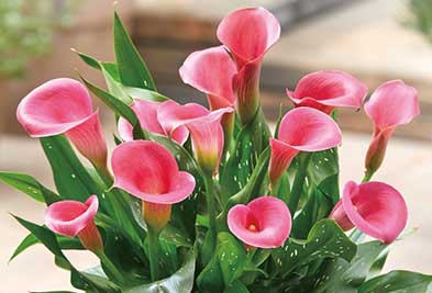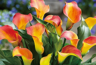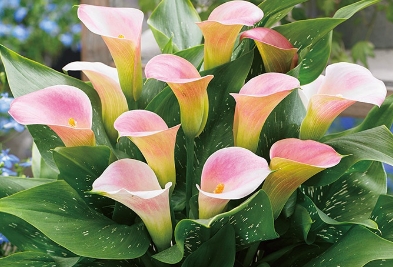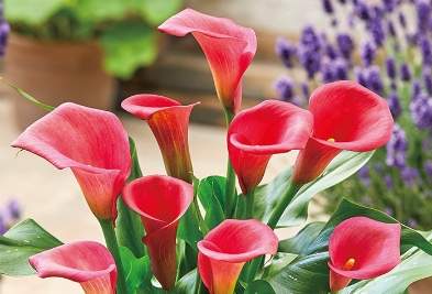 - 切り花でなじみ深いカラーを、花壇でも花束のような表情になるよう、密植気味で植栽。膝丈ほどの草丈になります。