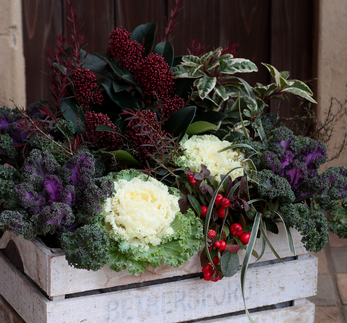冬~早春を彩る寄せ植えや切り花として古くから人気のハボタン。最近では多種多様なハボタンが登場し、冬の園芸の主役になりつつあります。和風の「お正月」イメージが強いハボタンも、アレンジ次第で華やかでかわいらしいイメージをつくることもできます。もちろんクリスマスにだってぴったり! そんなハボタンに待望のサカタオリジナルの新品種が登場しました!