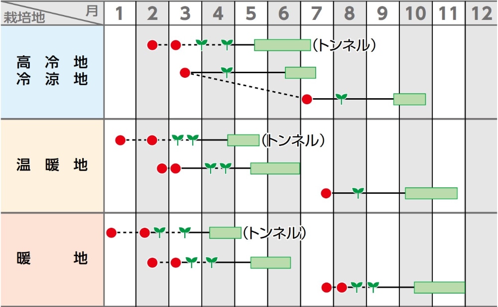 定植後50~53日(夏まき)で収穫できる極早生品種のグリーンボール型キャベツ(アーリーボールより約7日早生)。葉肉は柔らかく生食用にぴったり。湿害に強く、生育のそろいがよいので、一斉収穫に適しています。小葉ですが玉の肥大がよく、球重1.0~1.2kgでよくそろいます。玉は正円形で、玉色は濃く光沢があり、裂球が遅く在圃性が高い。春まき、夏まきに適し、トンネル早出し栽培にも適しています。