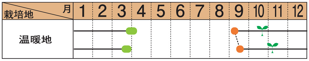 ●上記より早くタネまきしたり、定植するととう立ちしてしまう可能性があるので、まきどきは作型通り行いましょう。