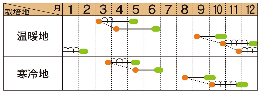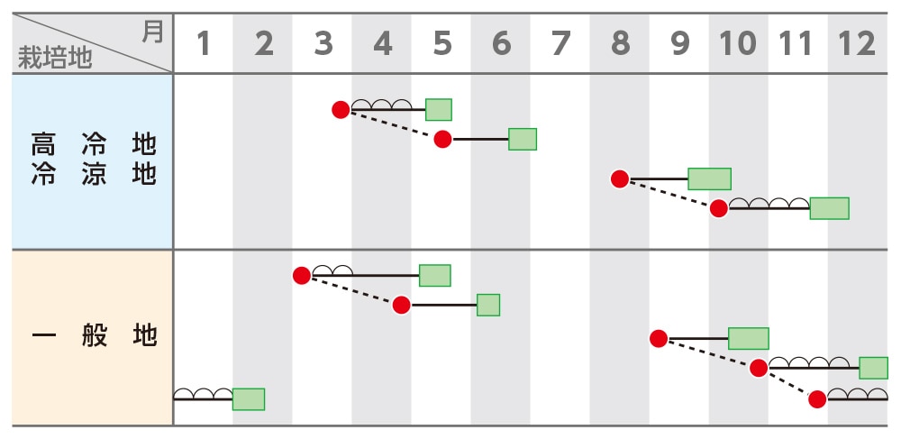 耐病性に優れる中~大柄のチンゲンサイです。葉色が極めて濃いのが特徴です。生育は早生で草姿は立性、葉は細長く、葉枚数が多いです。葉柄はやや長めで首部のしまりがよいです。温暖地で3~4月まき、9~11月の秋まき向きです。節間の間伸び、尻部の乱れが見られる高温期の栽培は避けます。また、抽だいが早いため、冬~早春の栽培も避けます。萎黄病、白さび病、根こぶ病に耐病性があります。ただし、根こぶ病はレースによって発病することがあるので注意します。