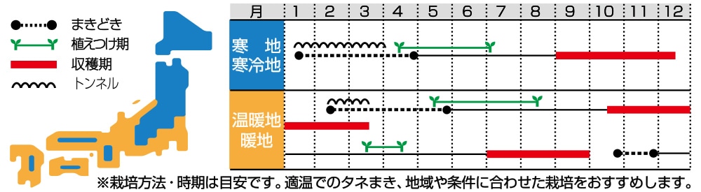 土質を選ばず適応性が広く、病気に強くて作りやすい品種です。