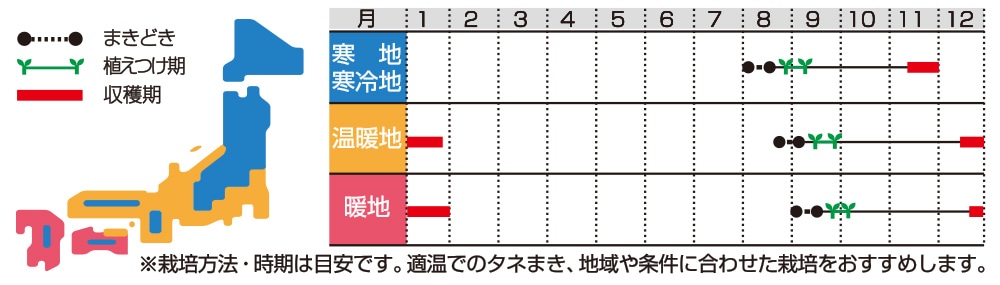 柔らかさ、甘み、食感、バランスの取れたおすすめ品種。根こぶ病、べと病に強く、耐寒性に優れ、作りやすいのも特長です。