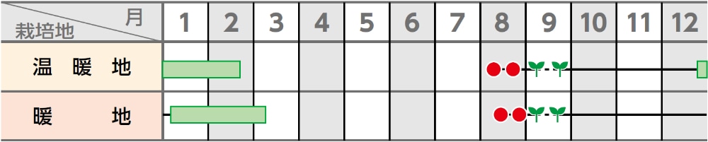 芯葉が花蕾を包む性質があり、寒い時期でもアントシアン(紫色)の発生が少ないです。温度適応性が高く、暖冬でも高品質なブロッコリーが収穫できます。