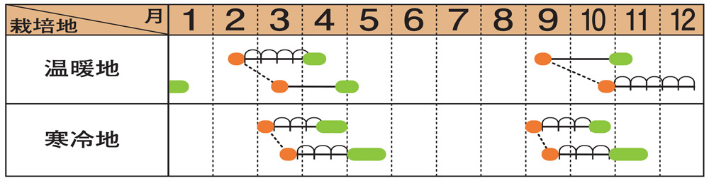 極濃緑の光沢のある剣葉で、株張りがよく、収量性が高い品種です。耐湿性が強く、湿害による黄化が出にくいので、秋まきの露地栽培には特におすすめです。