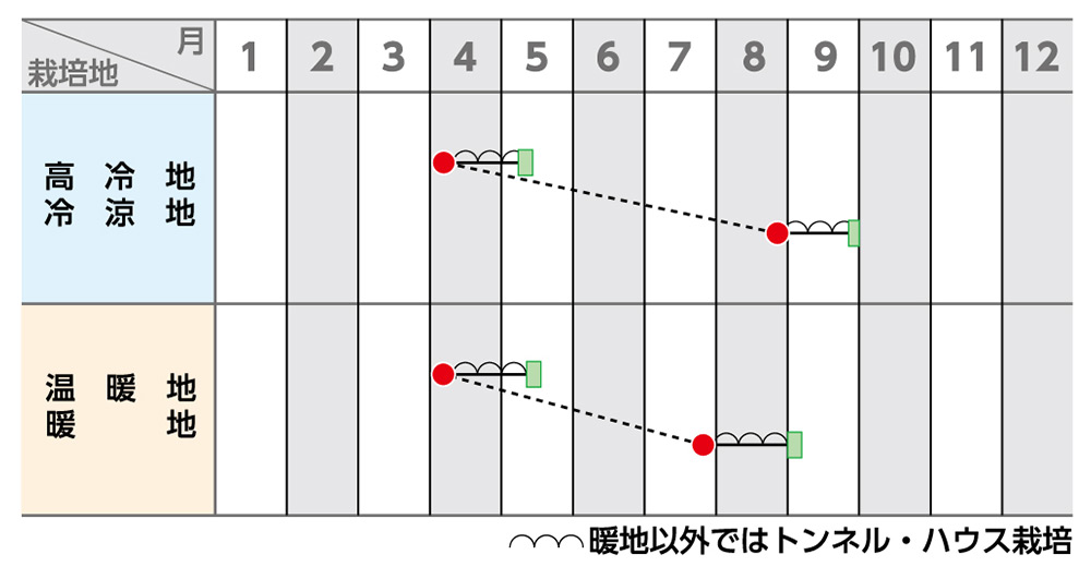 高温期に起こりやすい萎凋病に強い耐病性を持ち「ジャスティス」よりもやや生育がゆっくりな品種です。葉色が濃く、葉軸がしなやかで収穫しやすい特徴があります。