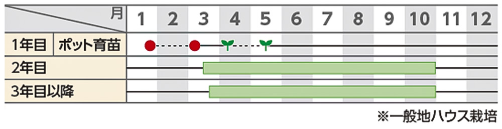 アスパラガスは、まず株を育てるのが大切。1年目は収穫せず、2年目も控えめに収穫。こうして我慢することで3年目以降はたくさん収穫できます。
