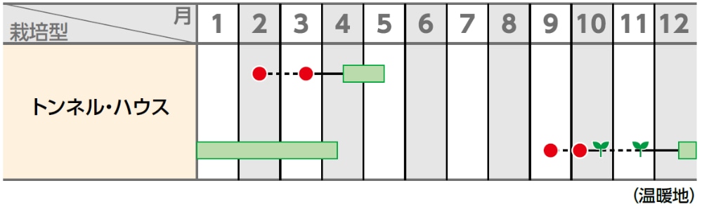 べと病に強く、石灰欠乏症が出にくいです。トンネル・ハウスの摘みとり栽培に適する早生種。
