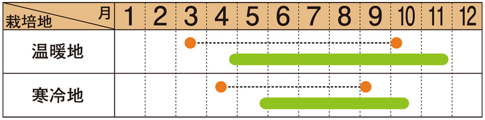 株張りがよく作りやすいミズナです。低温期でもよく成長します。軸は極細で白く、シャキシャキした食感がおいしいです。