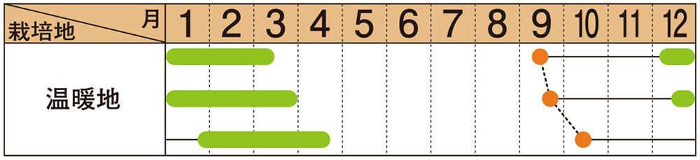 高菜に似た草姿で、下葉からちぎって収穫し、とう立ちする4月ごろには地際から収穫します。煮るとほんのり甘みがあります。九州北部で雑煮として食べられ、縁起物として正月料理などにも使われます。