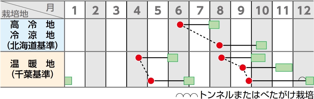 そろいがよく、見た目がきれいで尻づまりがよいです。歯切れのよい食感を生かしてサラダや漬物、炒め物、煮物と幅広く利用できます。小葉なので密植栽培が可能。