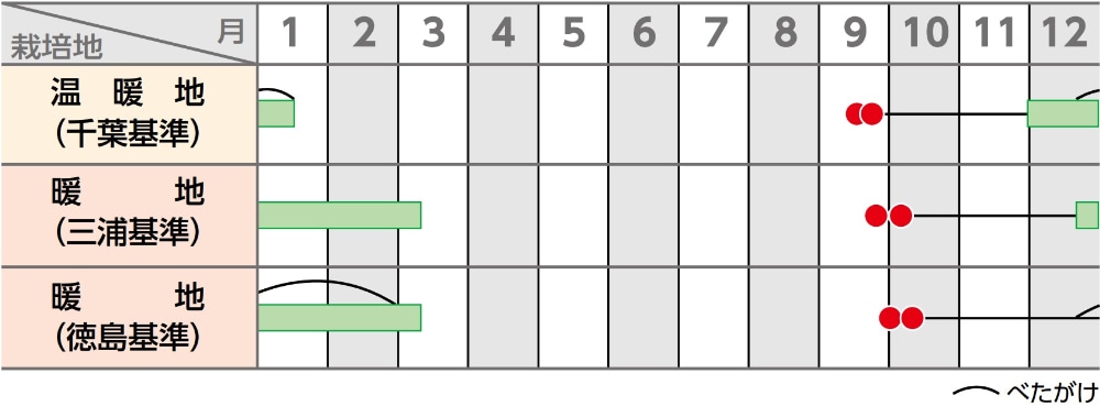 肌にテリがあり、品質の高い冬ダイコンです。栽培適応幅が広く、比較的温度に鈍感なため、早まきによる曲がりや遅まきによる生育不良が発生しにくく、天候不順の中でも安定した収穫が期待できます。