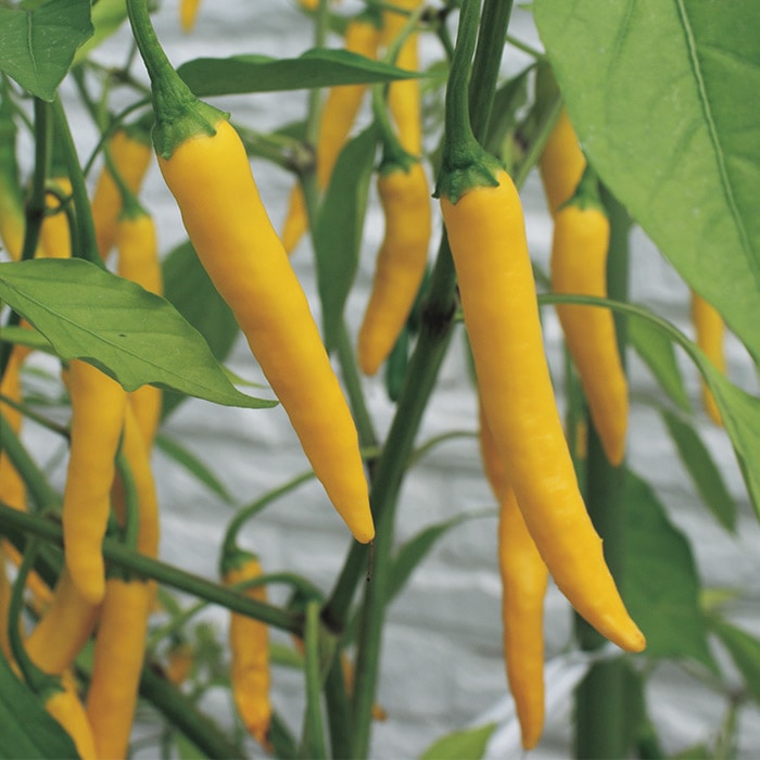 果実は青から黄に変化し、青トウガラシから強い辛みを感じます。九州地方ではゆずこしょうの原料としても利用されています。また、観賞用として鮮やかな色の変化を楽しめます。