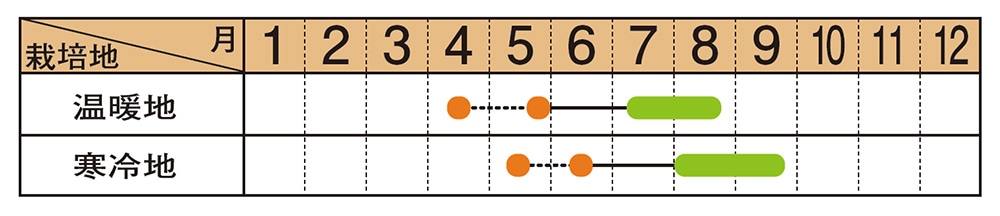 ※収穫目安はサカタのタネ 掛川総合研究センター(静岡県)における「露地マルチ栽培」での日数です。