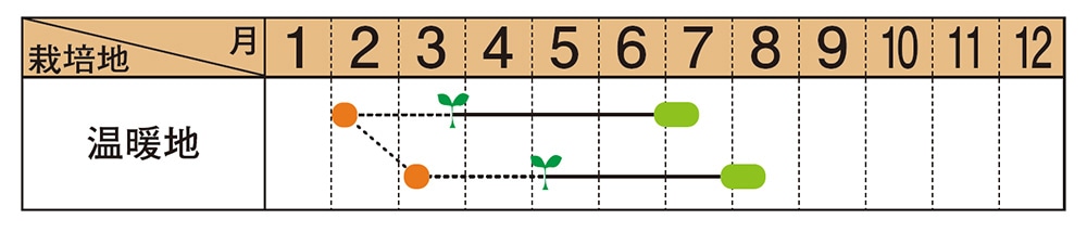 ※授粉のため「タネあり品種」の苗を全株の2割以上、同じ畑に植えます。この品種だけでは着果しません。