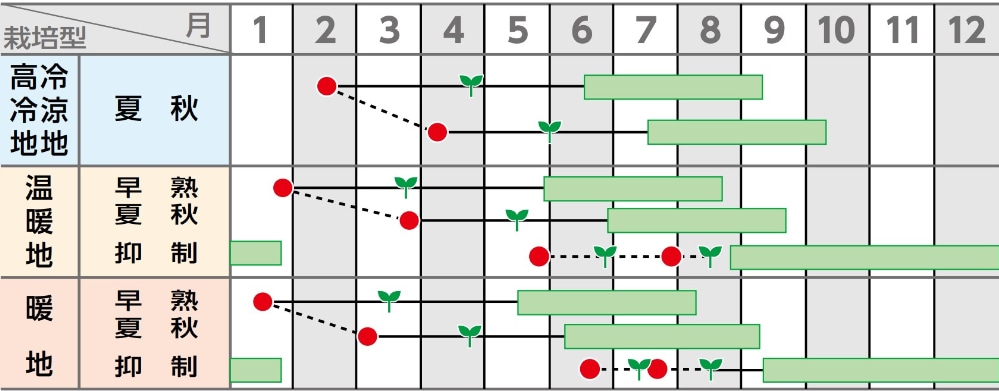 病気に強く、収穫した果実の日持ちもよい品種。食味はとてもよく、裂果も少ないのでぜひ真っ赤に熟してから食べてみてください。草勢はややおとなしめですが、長く収穫できるスタミナタイプです。