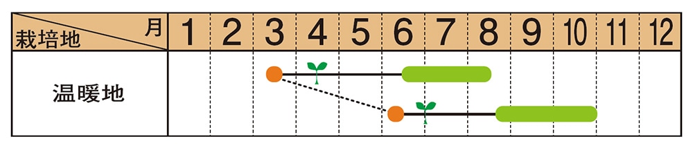 生育旺盛。株が疲れにくいので、抜群の収量を誇る品種です。ボリュームのある果実がたくさん収穫できます。