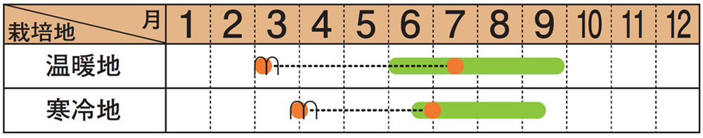 暑さに強く、3~5kgの大きさで収穫できます。表皮は光沢があり、白い粉は出ない性質があります。果肉は白色で淡泊な味です。汁物や煮物、肉料理など幅広く活用でき、低カロリーな野菜です。