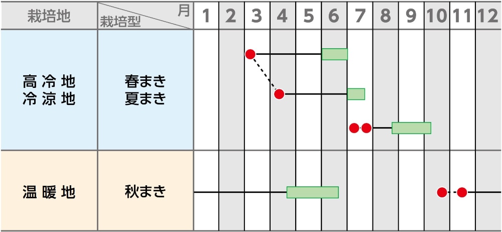 高冷地、冷涼地の方にもおすすめの極早生種。うどんこ病に強く、生育旺盛です。低い位置から着莢します。