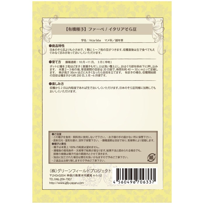 有機種子 ファーベ イタリアそら豆 アグアドゥルセ スペルシモニア