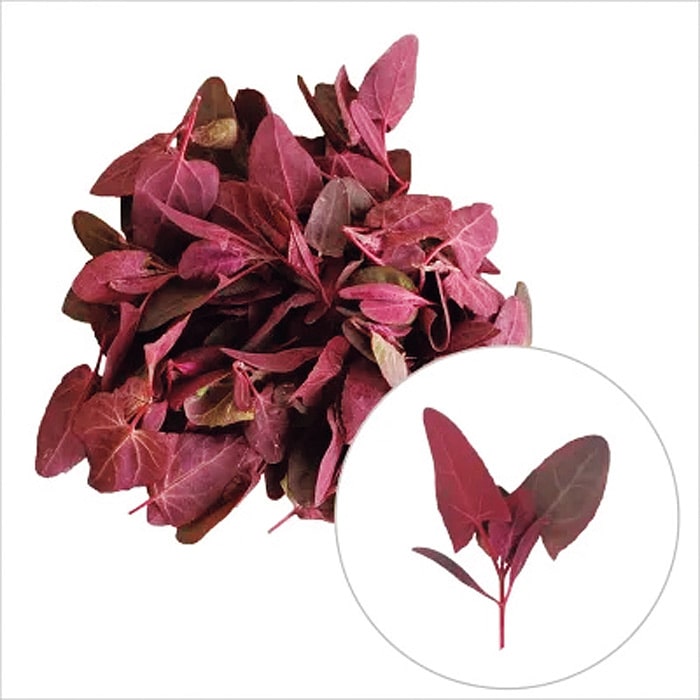 ホウレンソウに似た風味が楽しめる、濃い赤色が特徴のベビーリーフです。サラダに彩りを加えたい時に便利です。湯通ししてもおいしくいただけます。