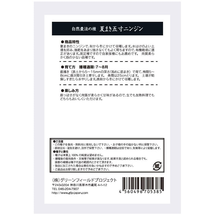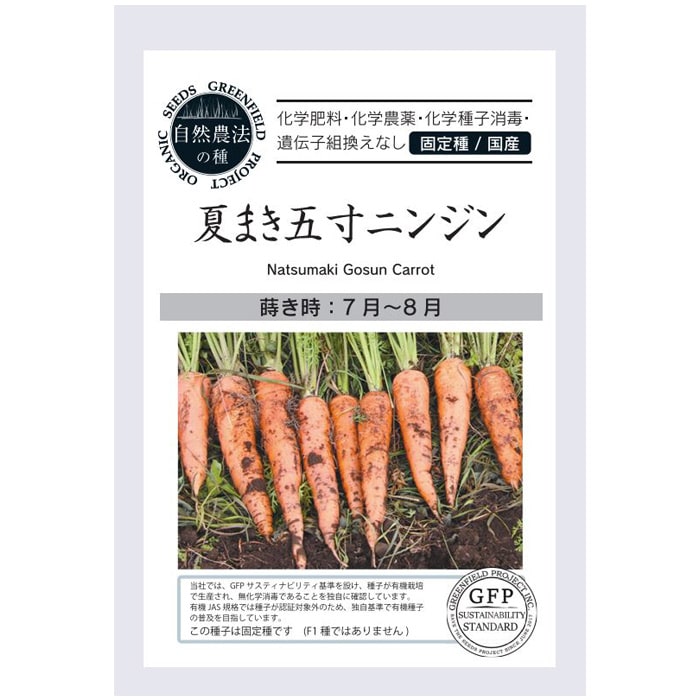 夏まきで、秋から冬に収穫します。施肥なしでもよく育つので、有機栽培に向きます。肉質柔らかく筋の少ない品種です。