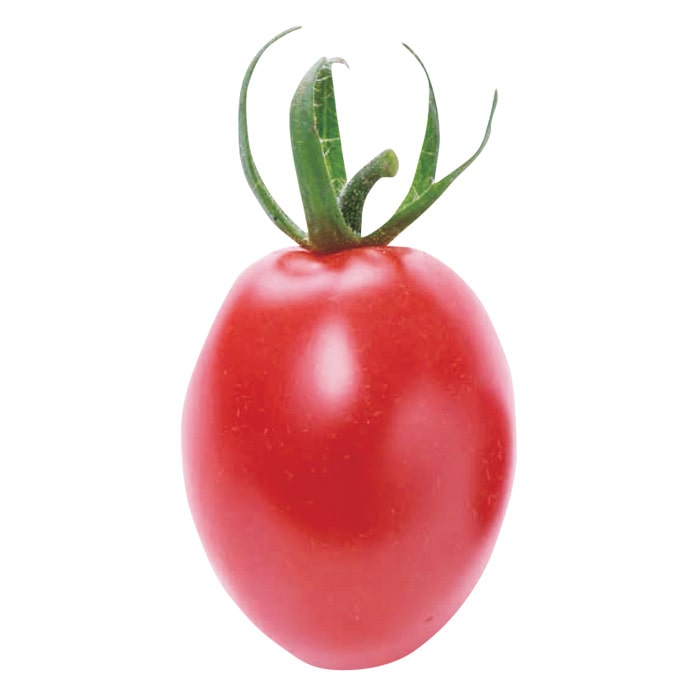 比較的小ぶりで、かわいらしいプラム形。いかにもミニトマトらしい、明るい赤色です。