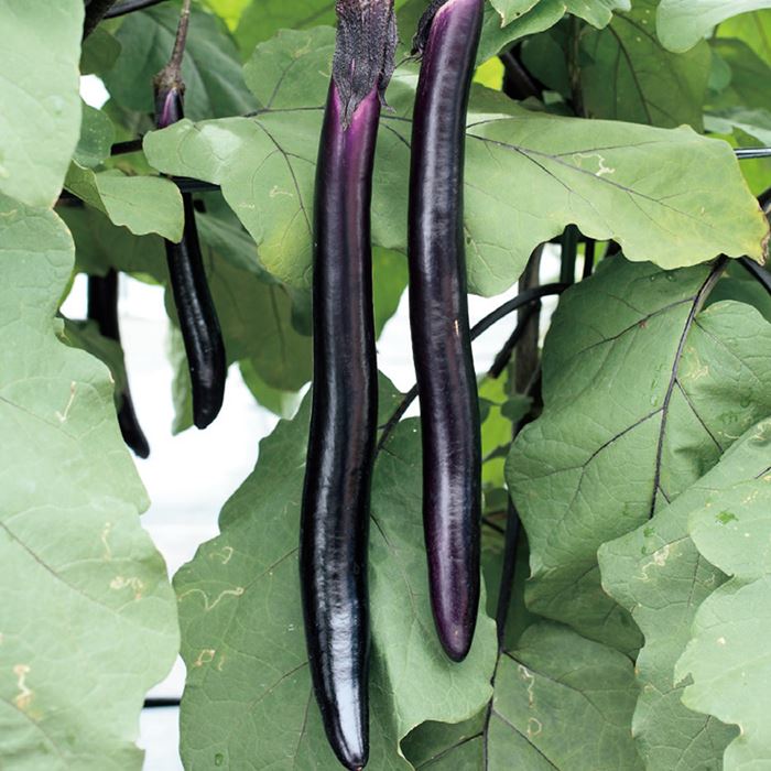 見た目が面白い「ひもナス」タイプ。生育旺盛で夏でも株がばてにくく、長く収穫できます。