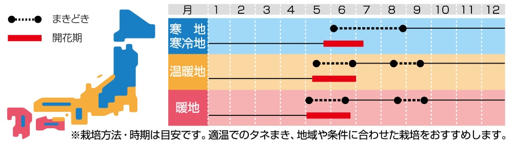 生育が早く、秋まきでも翌春に開花する一年草タイプ。切り花スタイル、株のそろいがよいです。加温ハウスでの促成栽培は8月中旬以前に播種し、年内は自然の低温に合わせ、年明け後に加温と電照で16時間の日長になるよう調整します。