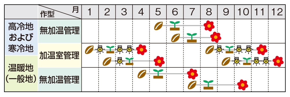 窒素肥料分が多い環境では、茎が扁平(へんぺい)になったり、花冠の形が崩れたりすることがあるので注意してください。カリウムをしっかり効かせての栽培がポイントです。