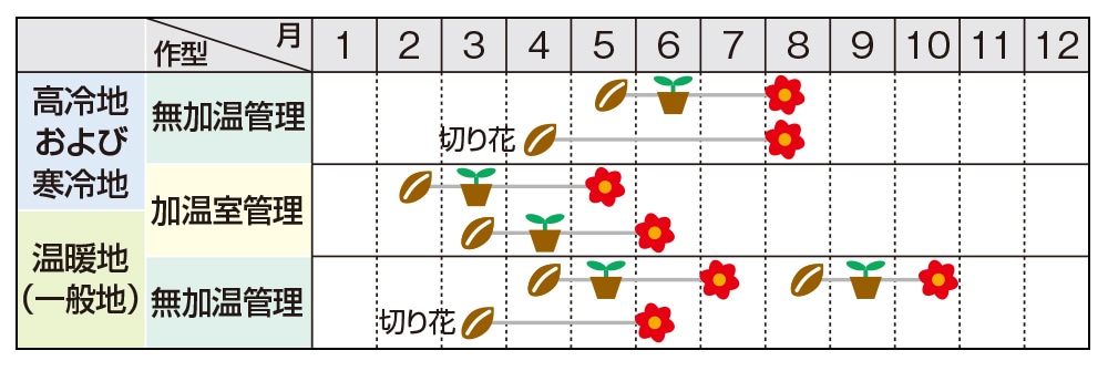 真夏の日差しでも色があせにくく花持ちがよいので、花壇植え、切り花、ともにおすすめです。立枯病予防のため、連作は避けましょう。