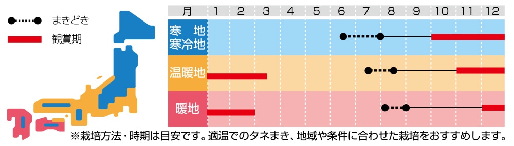 ※暖冬などの影響で気温が高い場合、発色が遅れたり、一度発色してもその後の高温で色戻りしたりする場合があります。