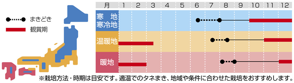 ※暖冬などの影響で気温が高い場合、発色が遅れたり、一度発色してもその後の高温で色戻りしたりする場合があります。
