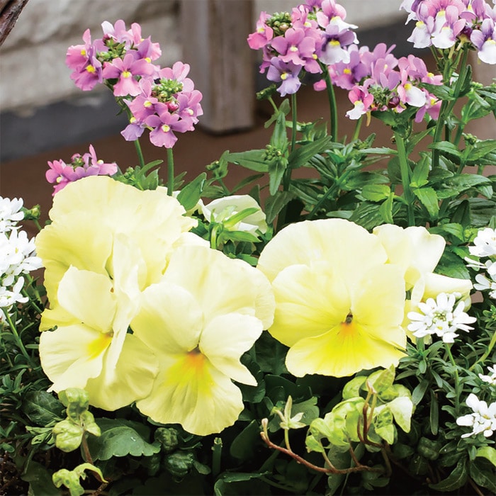 高温長日下でもコンパクトな草姿の大輪系パンジー。斜め上向きに開花します。