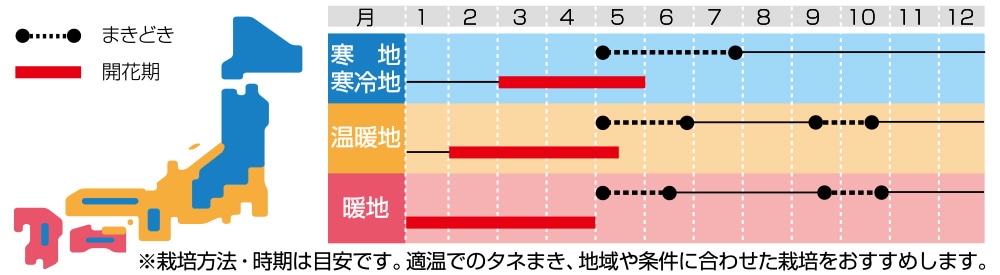 耐寒性があり、丈夫で育てやすいです。低温で栽培ができ、出荷は春からで、加温栽培により年内より開花可能です。短日で花芽分化し、長日で開花促進します。シリーズ中、開花が遅いです。