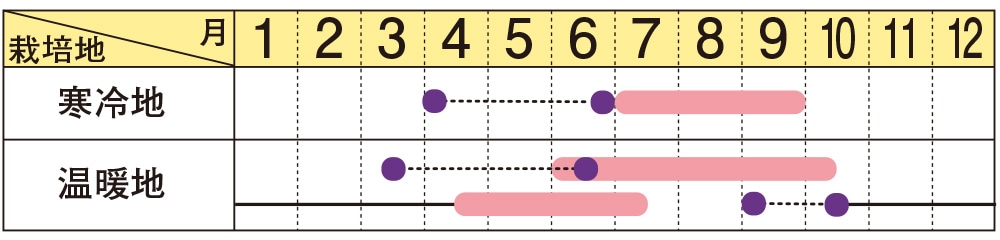 寒冷地にお住まいの方、早春にペチュニアを植えたい方におすすめ。定植後に低温短日期(気温約5℃以上)で栽培しても花が咲きます。春早くから成長するので、栽培期間・保温期間を短縮できます。