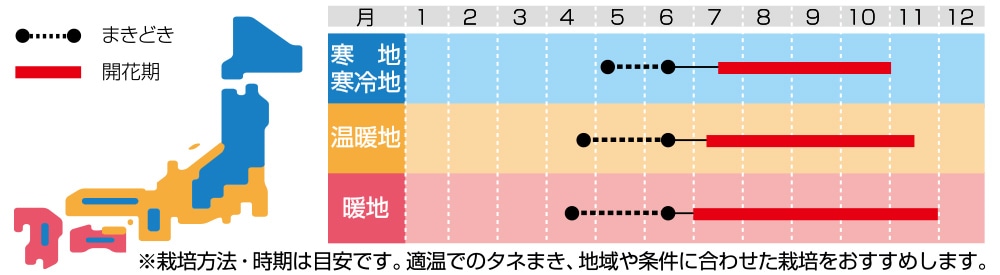 暑さに強く、鮮やかな黄色の花を夏から霜の降りるころまで咲かせ続けます。
