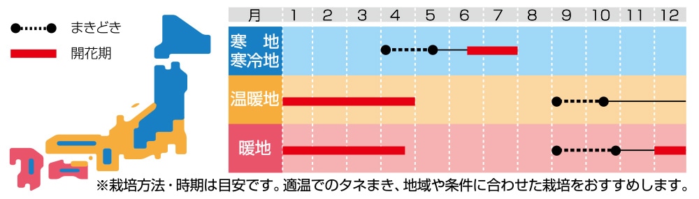 カレンジュラは早まきなどの高温、長日条件下では、花弁数が減少したり、花色が黄色くなることがあります。また、窒素過多、カリウム欠乏で花形が一重になることがあるので注意してください。