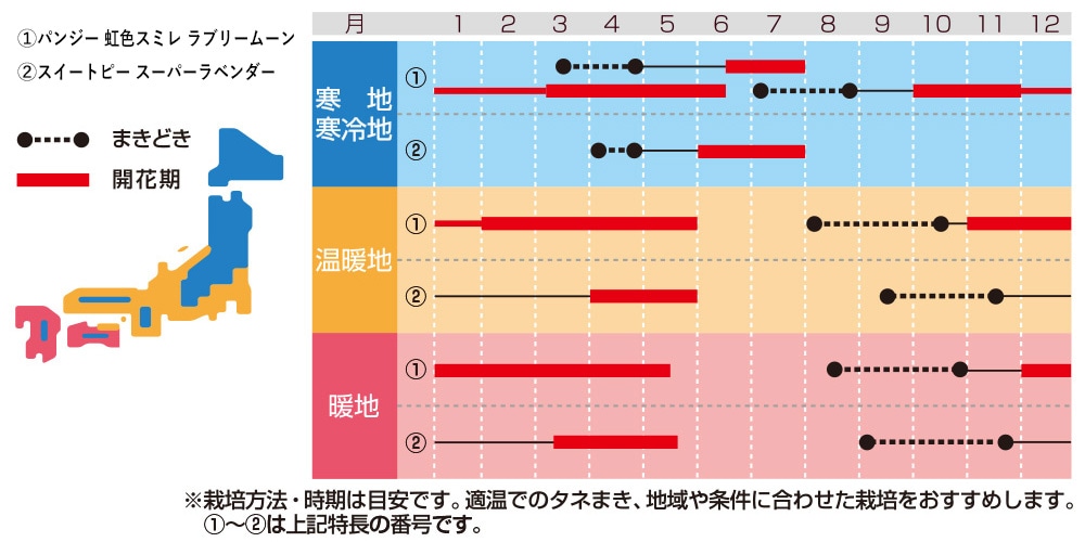 「パンジー 虹色スミレ ラブリームーン」と「スイートピー スーパーラベンダー」が入ったセット