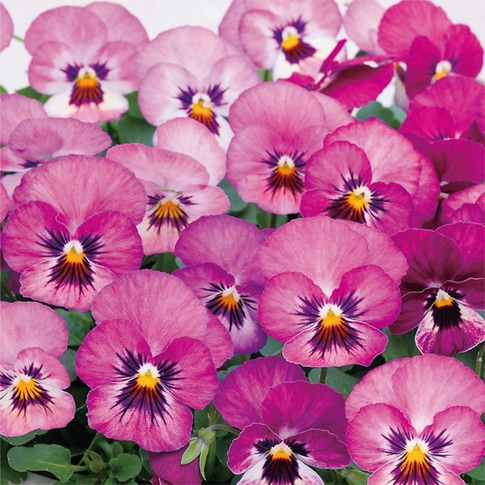 - パンジー 「よく咲くスミレ スイートポテト」、パンジー 「よく咲くスミレ ラムレーズン」、パンジー 「よく咲くスミレ マシュマロ」 、ビオラ 「ピエナ ピーチ」