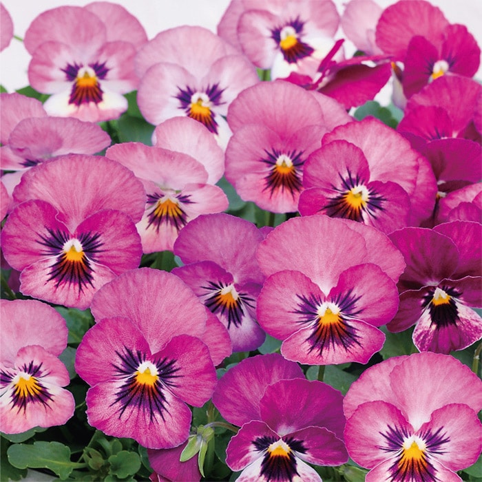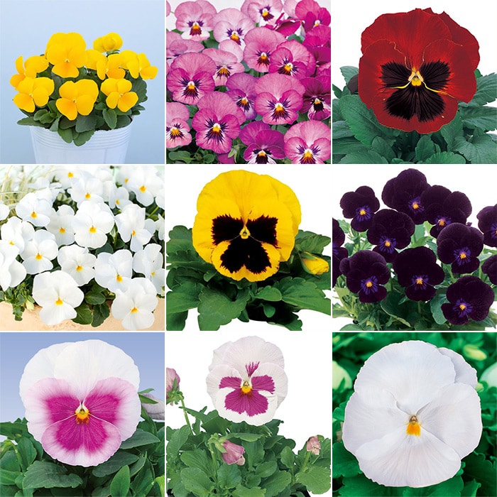 - ビオラ ピエナ「イエロー(ver.2)、ピーチ、ブラック、ピュアホワイト」、パンジー パシオ「イエローブロッチ(ver.2)、レッドブロッチ(ver.2)、ピンクフレア、クリアホワイト(ver.2)、いちごみるく」