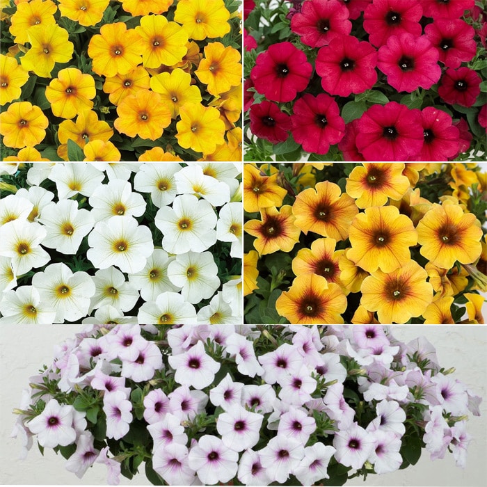 - ボルドー(2株)、サンセットオレンジ、キャラメルイエロー、パールホワイト、トレーリング ラベンダーアイス(各1株)