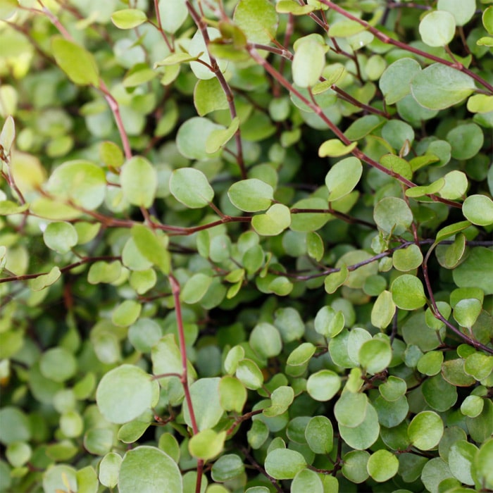 小さな緑色の葉と細いワイヤーのような茎が特徴で、春から夏にかけて淡い黄緑色の花を咲かせます。耐寒性・耐暑性が強く、グラウンドカバーやハンギングバスケット、コンテナの寄せ植えに最適です。インテリアグリーンとしても人気があります。別名はミューレンベッキア。