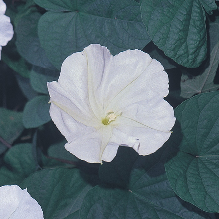 夕やみとともに咲き始め、柔らかな香りを伴い、早朝にしぼむ神秘的なつる植物です。