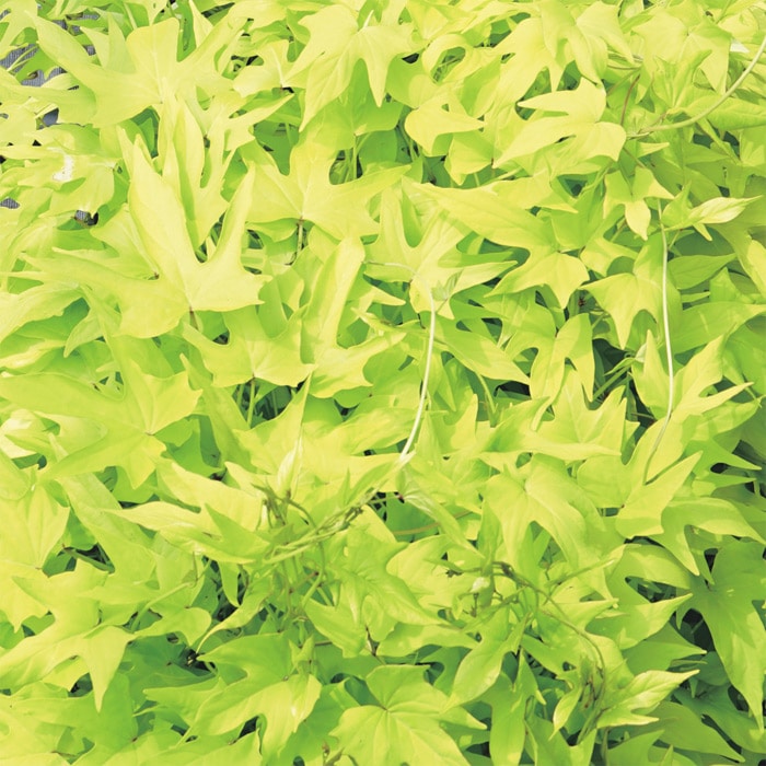 緑のカーテンのみならず、鉢植え、ハンギングバスケット、花壇植えなど幅広く使える夏のリーフ素材です。