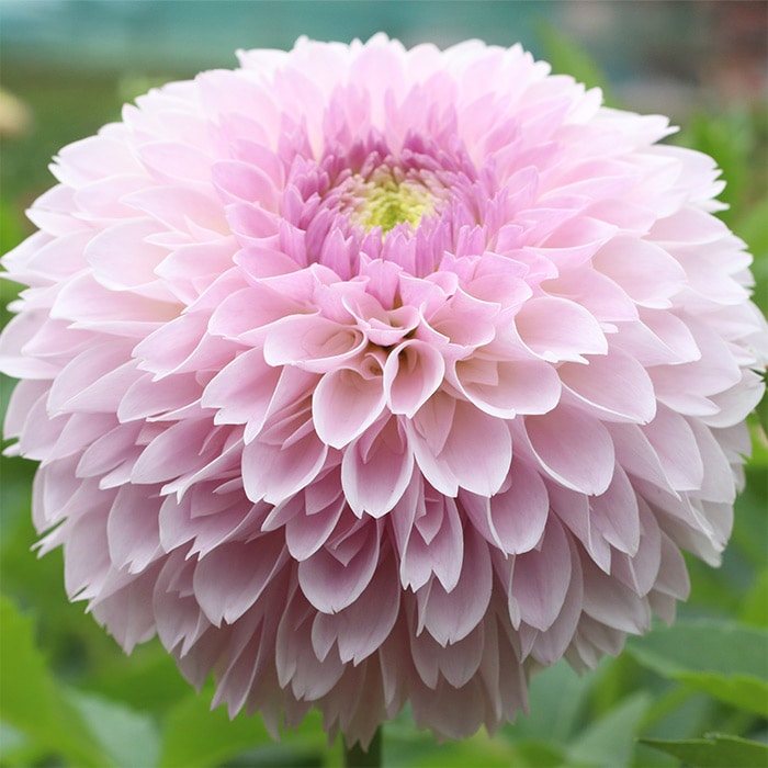 落ち着いて上品な花色の極大ボール咲き。丸く豊満な花姿。草性は中太で硬く切り花にも良い。