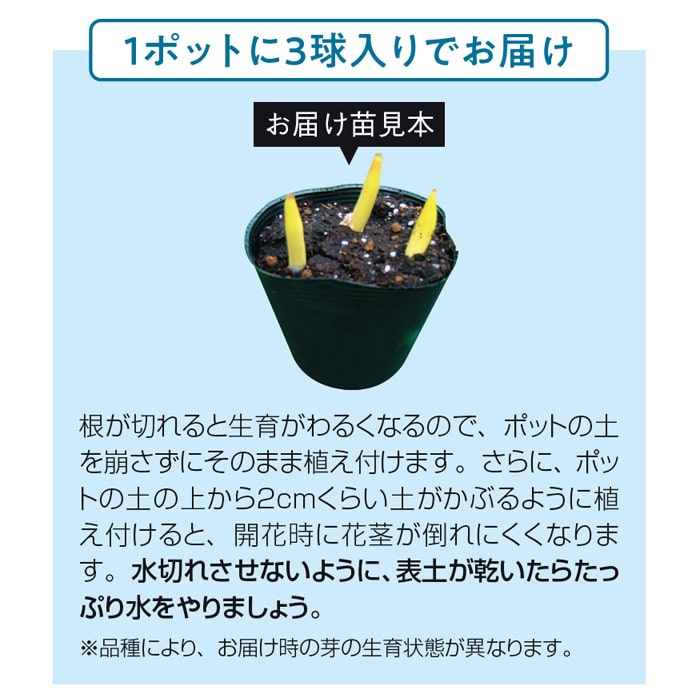 ※極寒地・寒地のお客様は、年内開花を考慮し早めにお届けしますので、なるべく早めのご注文をお願いいたします。